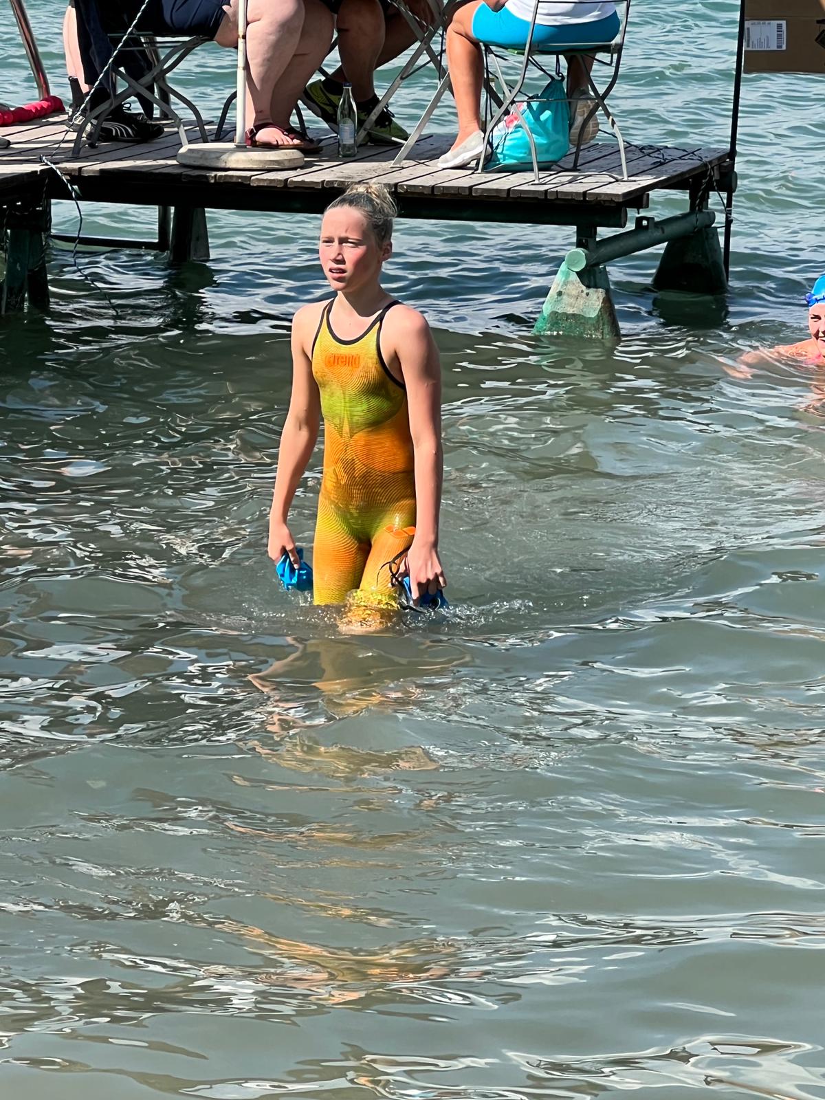 An den 2500m versuchten sich Milena Heider (Jahrgang 2009) und Anna Fieblinger (Jahrgang 2010). Anna schwamm 2 sehr konstante Runden und belegte am Ende den 7. Platz. Herausragend war die Leistung von Milena. Hinter der Nationalkaderschwimmerin Alina Baievych belegte sie in einer Super Zeit von 29 Minuten und 24 Sekunden eine tollen 2. Platz.