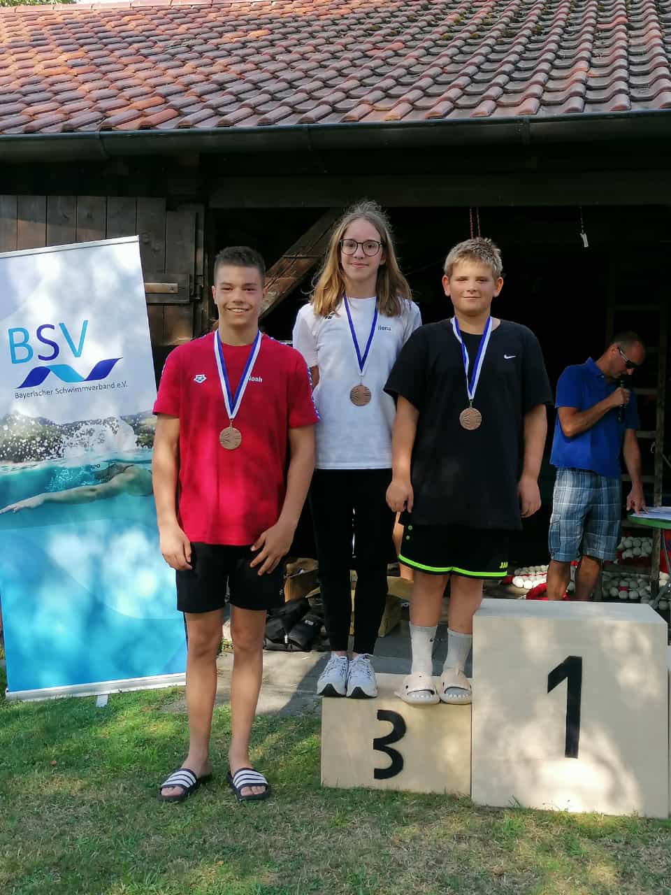 Alle Staffeln, ob jung ob alt starteten zusammen in einem packenden Rennen. In der offenen Klasse traten in Staffel 1 Lars Mesch (Jg. 2003), Carlota Schmidt-Bäumler (Jg. 2005) und Max Spitzenpfeil (Jg. 2005) an. Ihre Zeit von 50:02 Minuten brachte sie auf den 8. Platz in Bayern. Till Gaksch, Lenja Beetz und Lena Fischer (alle Jahrgang 2006) hatten z. Teil ein paar Orientierungsproblem mit den Bojen und schafften trotzdem einen guten 15. Platz.