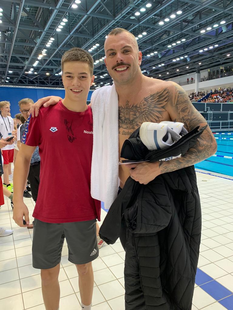 Noah Heinlein mit Olympiasieger und Weltrekordler Kyle Chalmers (Australien)